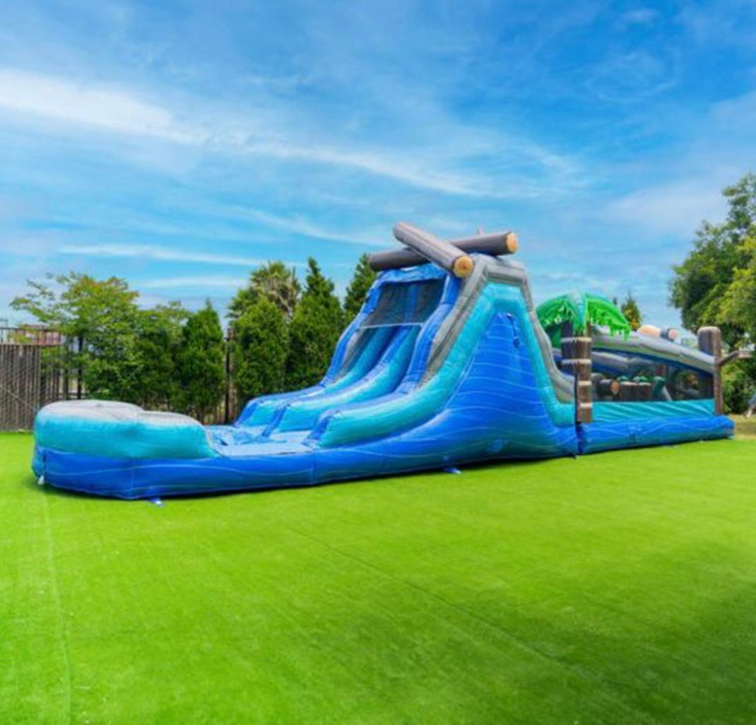 Make a bold statement with this 45-foot dual-lane obstacle course, built for high-energy entertainment and friendly competition. Featuring racing lanes, climbing elements, and exhilarating slides, this premium attraction is perfect for larger events, delivering an unforgettable, high-impact experience your guests will talk about long after the party ends.